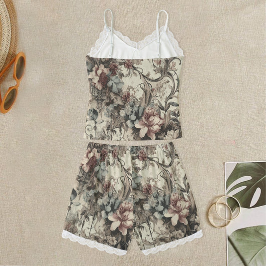 Vampire Art Women's Grunge Victorian Cami Short Loungewear Suit With Lace Edge