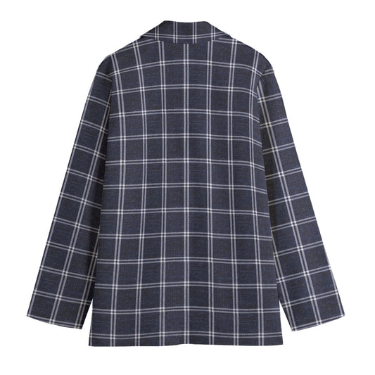 Vampire Art 100% Cotton Dark Academia Grey & Blue Tartan Women's Leisure Blazer | 245GSM Cotton