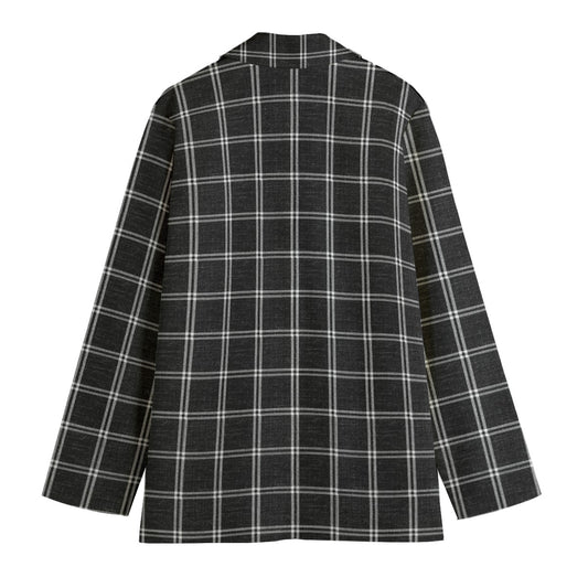 Vampire Art 100% Cotton Dark Academia Grunge Black Tartan Women's Leisure Blazer | 245GSM Cotton