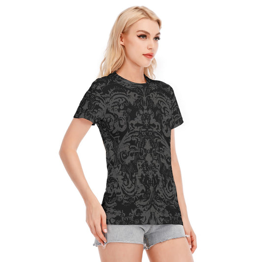 Vampire Art 100% Cotton Grunge Black Damask Women's Round Neck T-Shirt | 190GSM Cotton