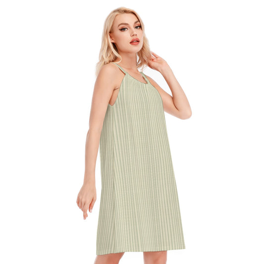 Vampire Art 100% Cotton Grandad Khaki Stripy Pattern Women's O-neck Cami Dress | 190GSM Cotton