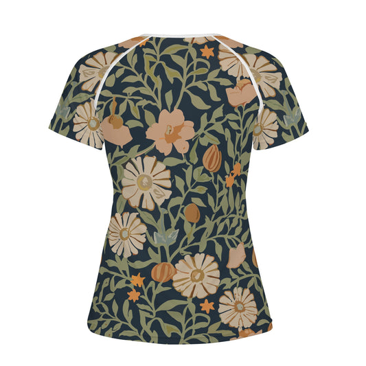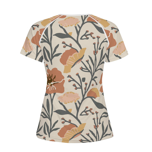 Vampire Art Retro Floral Womens T-shirt - Light Beige