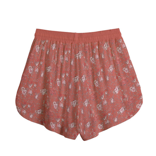 Vampire Art Retro Floral Women's Shorts With Drawstring | Rayon - Red