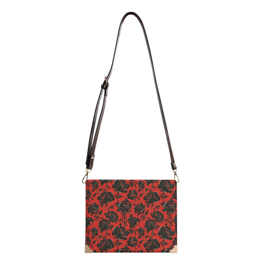 Vampire Art Dark Academia Book Cover Crossbody Bag - Red with Black Goth Roses
