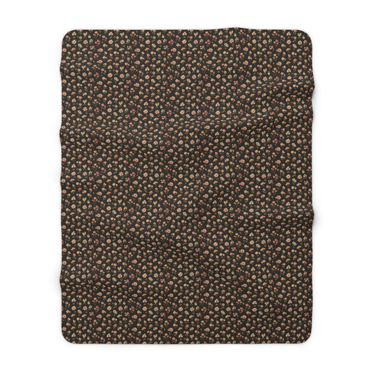 Vampire Art Nostalgic Dream Luxury Sherpa Fleece Blanket - Vintage Florals in Black