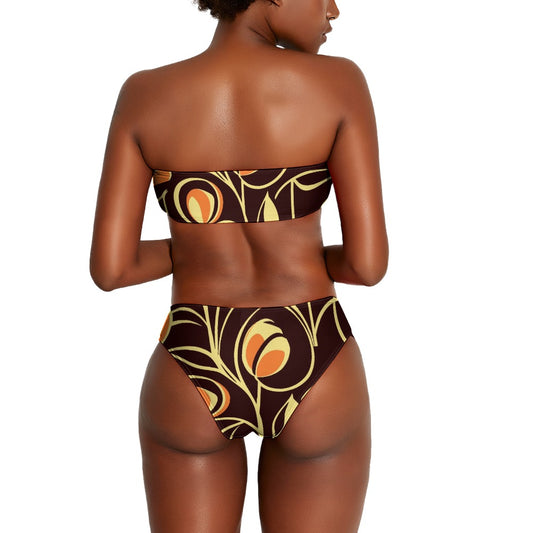 Vampire Art Two Piece Bandeau Strapless Retro Bikinis Swimsuit - Sixties Brown