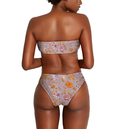 Vampire Art Two Piece Bandeau Strapless Retro Bikinis Swimsuit - Chic Vintage Florals in Mauve