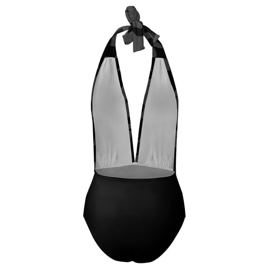 Vampire Art Retro Ladies Halter One Piece Swimsuit - Grunge Houndstooth and Black