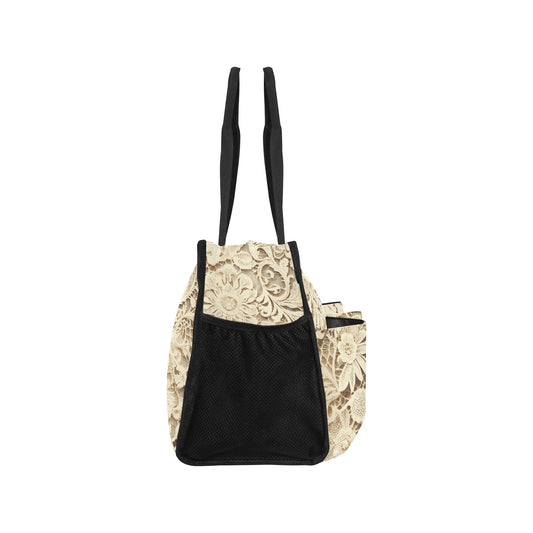 Vampire Art Retro Large Multi-pocket Beach Bag - Cream Lace Print