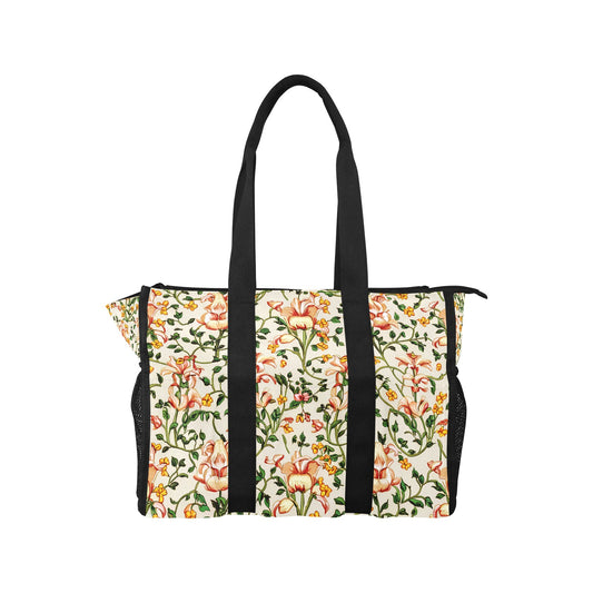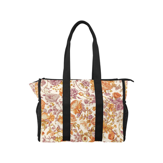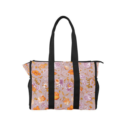 Vampire Art Retro Large Multi-pocket Beach Bag - Vintage Florals in Lilac and Orange