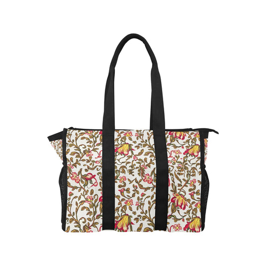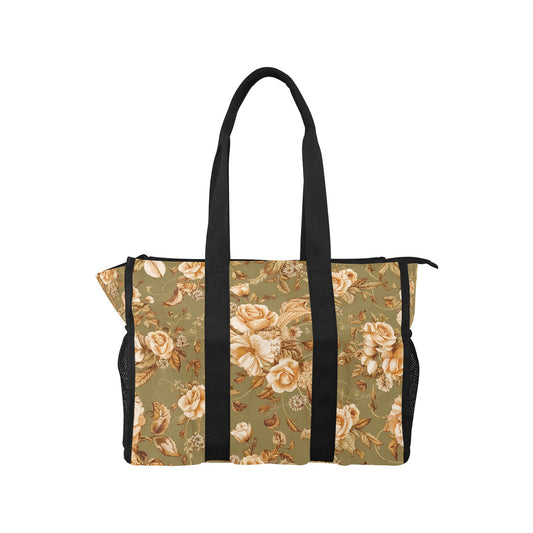 Vampire Art Retro Large Multi-pocket Beach Bag - Vintage Florals in Khaki