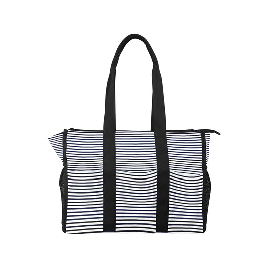 Vampire Art Retro Large Multi-pocket Beach Bag - Black and White Stripes