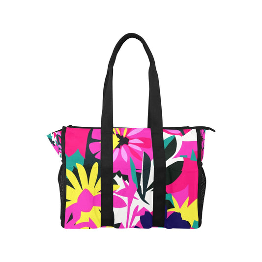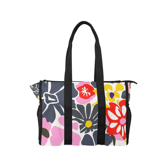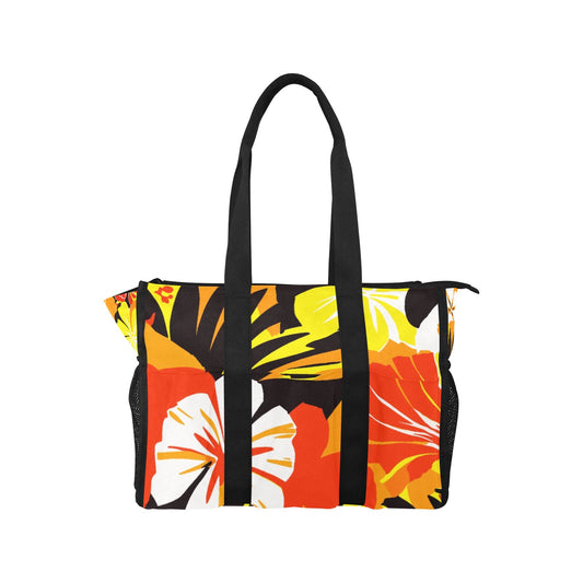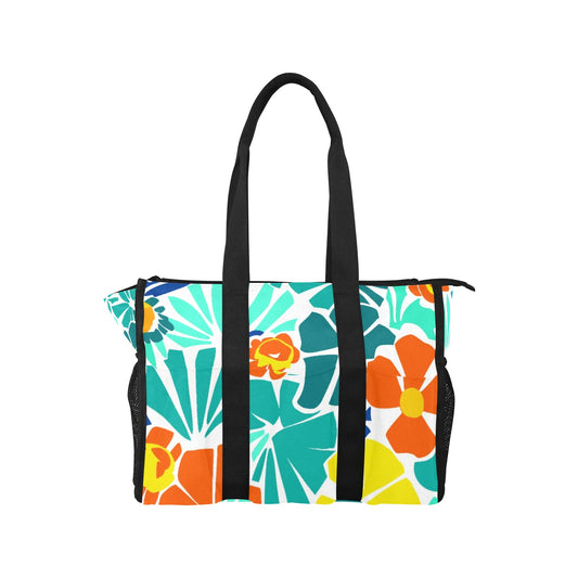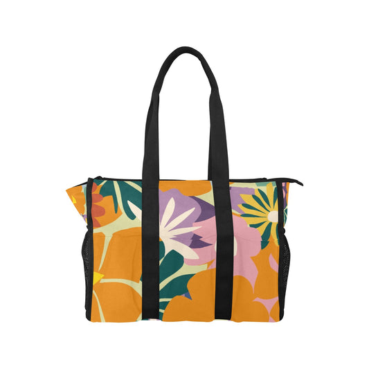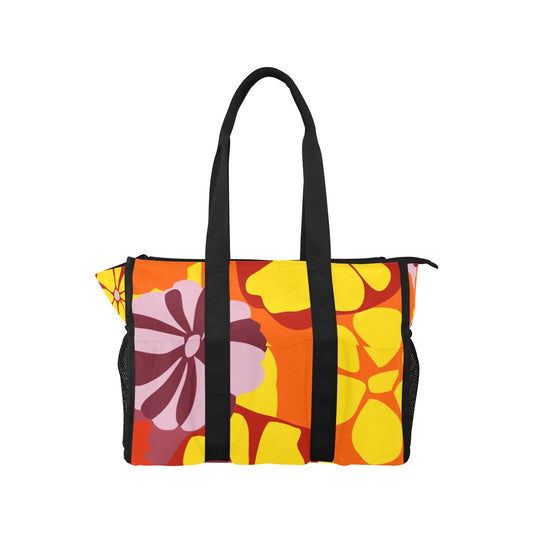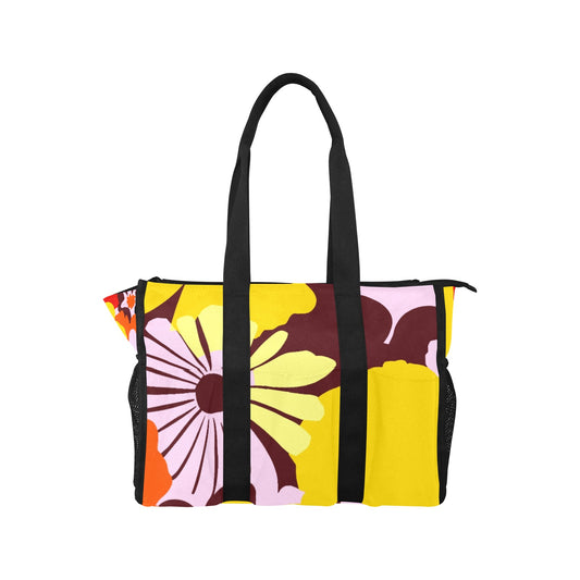 Vampire Art Retro Large Multi-pocket Beach Bag - Bold Sixties Florals in Yellows and Reds