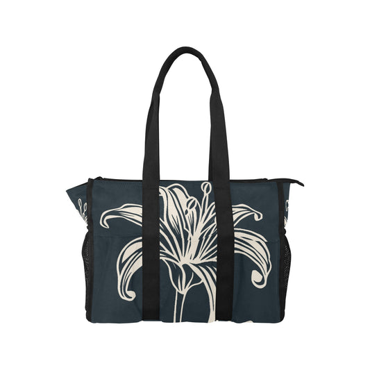 Vampire Art Retro Large Multi-pocket Beach Bag - Bold Sixties Florals with Lilac