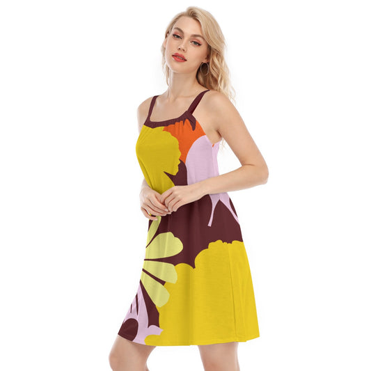Vampire Art Retro Bold Sixties Florals Sleeveless Cami Dress - Yellows and Browns