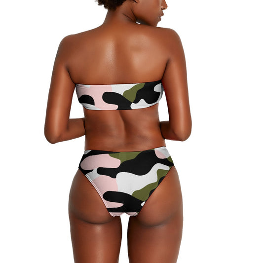 Vampire Art Two Piece Bandeau Strapless Retro Bikinis Swimsuit - Eighties Camo with Pale Pink