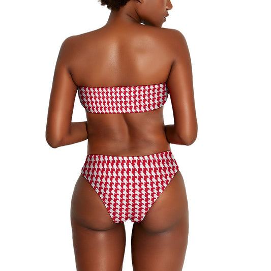 Vampire Art Two Piece Bandeau Strapless Retro Bikinis Swimsuit - Red Houndstooth