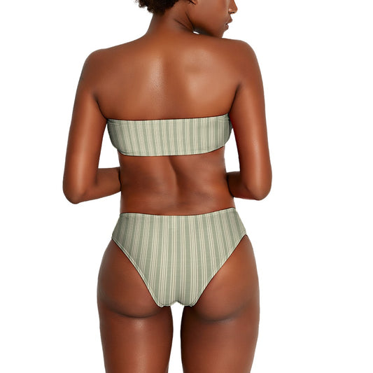 Vampire Art Two Piece Bandeau Strapless Retro Bikinis Swimsuit - Grandad Stripes in Khaki