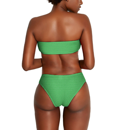 Vampire Art Two Piece Bandeau Strapless Retro Bikinis Swimsuit - Cottagecore Green Polka Dot