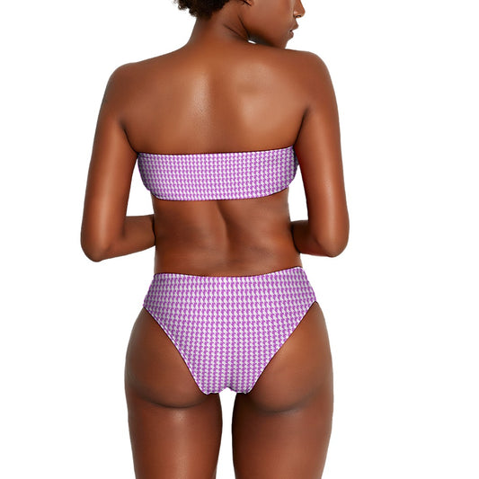 Vampire Art Two Piece Bandeau Strapless Retro Bikinis Swimsuit - Lilac Houndstooth