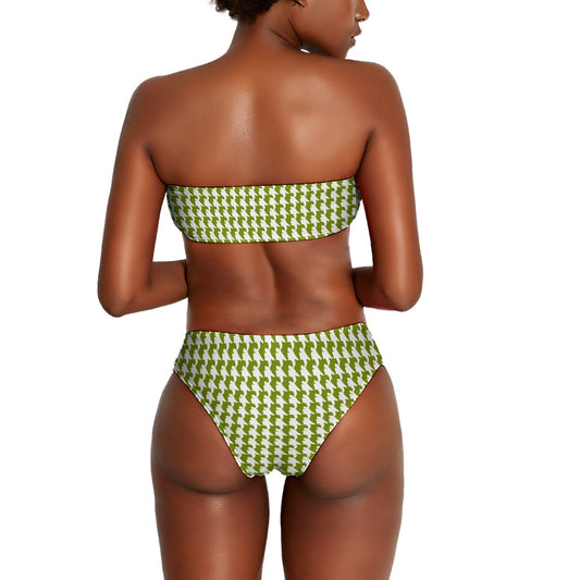 Vampire Art Two Piece Bandeau Strapless Retro Bikinis Swimsuit - Green Houndstooth