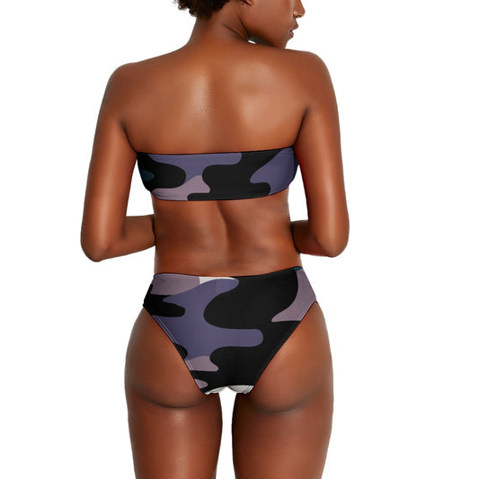 Vampire Art Two Piece Bandeau Strapless Retro Bikinis Swimsuit - Eighties Camo with Purple and Black