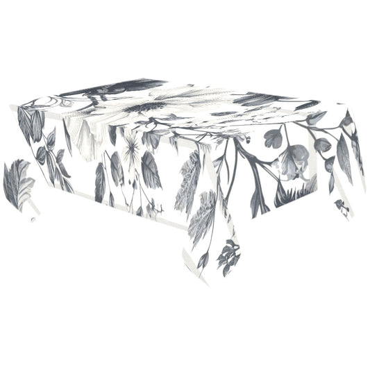 Vampire Art Delicate Grunge Victorian Floral Composition with Striped in Shades of Grey Cotton Linen Tablecloth