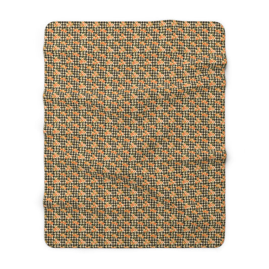 Vampire Art Nostalgic Dream Luxury Sherpa Fleece Blanket - Country style Black Gingham with Orange Flowers