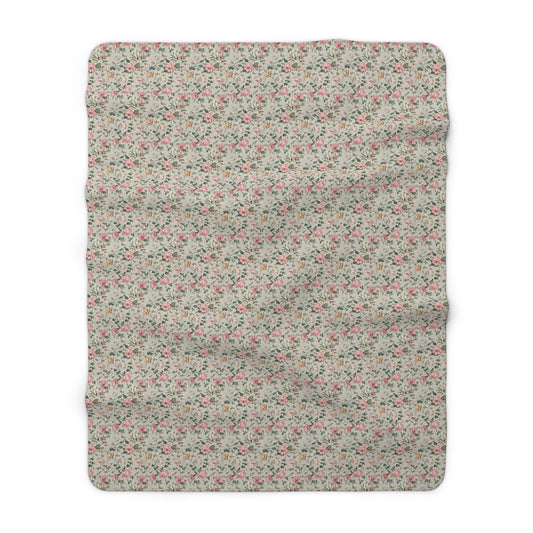 Vampire Art Nostalgic Dream Luxury Sherpa Fleece Blanket - Retro Florals in Pale Green
