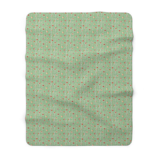 Vampire Art Nostalgic Dream Luxury Sherpa Fleece Blanket - Green Cottagecore Floral Gingham
