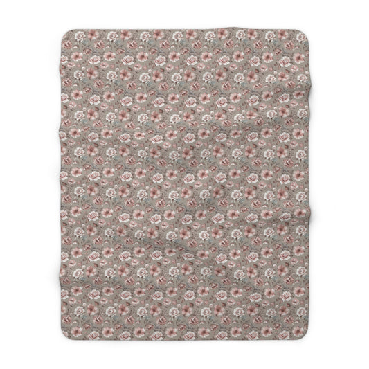 Vampire Art Nostalgic Dream Luxury Sherpa Fleece Blanket - Retro Delicate Grunge Roses in Taupe