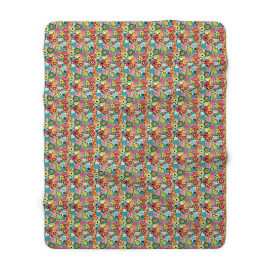 Vampire Art Nostalgic Dream Luxury Sherpa Fleece Blanket - Vintage Block Print Surfy Florals