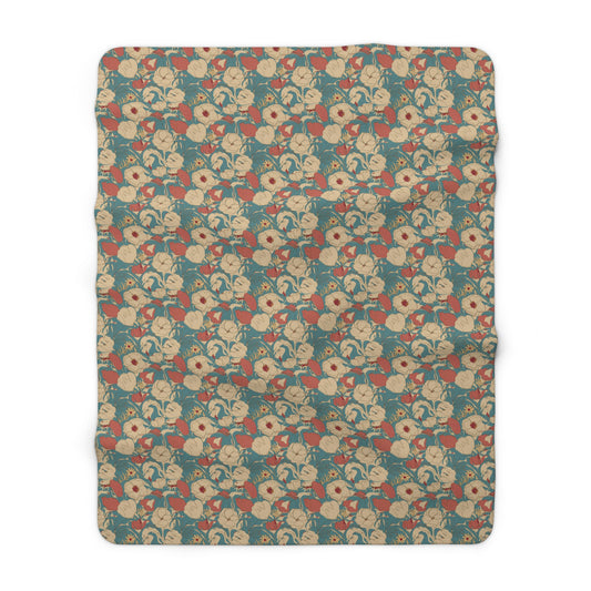 Vampire Art Nostalgic Dream Luxury Sherpa Fleece Blanket - Aged Surfy 1960s Flowers in Blue