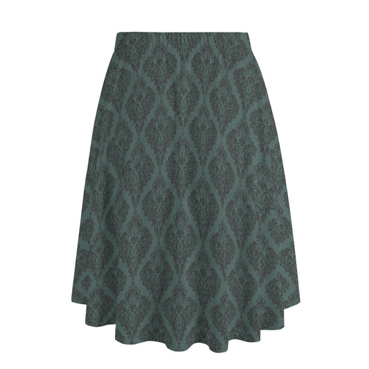 Vampire Art Edgy Trendsetter Maxi Skirt With Pockets - Teal with Black Lace Pattern