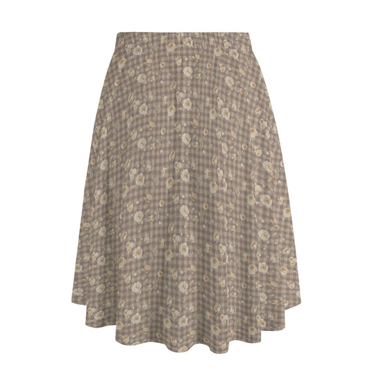 Vampire Art Edgy Trendsetter Maxi Skirt With Pockets - Cottagecore Khaki Floral Gingham