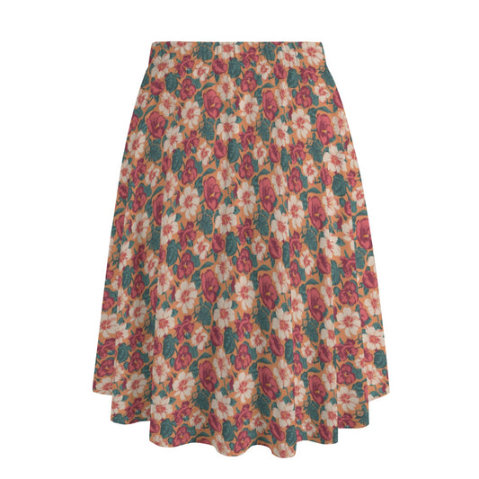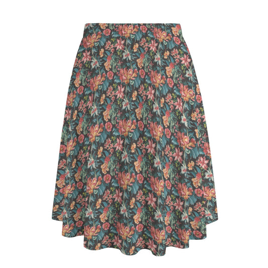 Vampire Art Edgy Trendsetter Maxi Skirt With Pockets - Retro Surfy Flowers in Coral