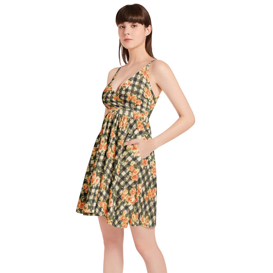 Vampire Art Vintage Bloom Gingham Flare Dress - Vintage Gingham with Roses