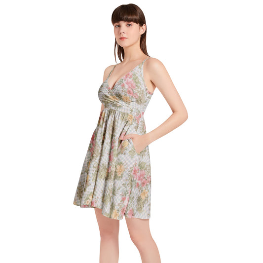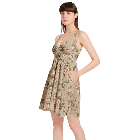 Vampire Art Vintage Bloom Gingham Flare Dress - Beige Gingham with Roses