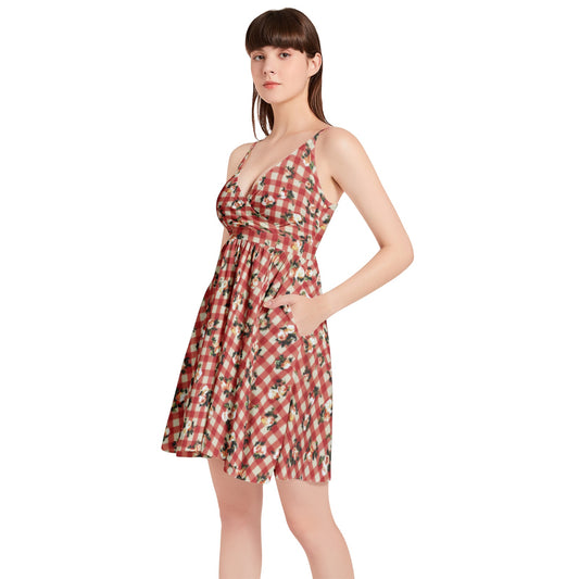 Vampire Art Vintage Bloom Gingham Flare Dress - Red Floral Gingham