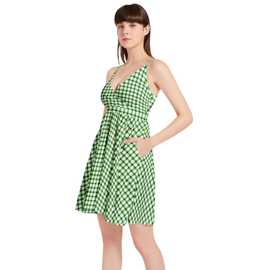 Vampire Art Vintage Bloom Gingham Flare Dress - Green Gingham