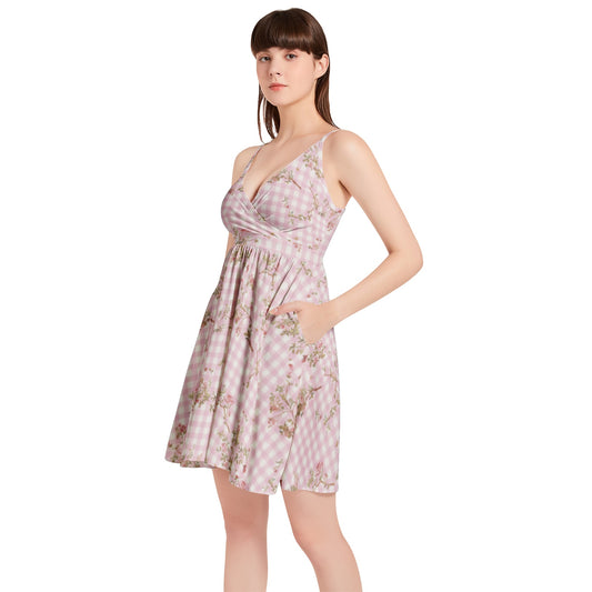 Vampire Art Vintage Bloom Gingham Flare Dress - Pale Pink Floral Gingham
