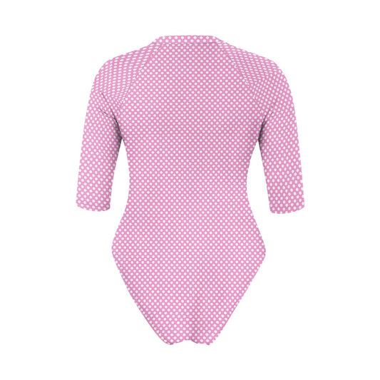 Vampire Art Half-sleeve Zipper Swimsuit - Pink Cottagecore Polka Dot