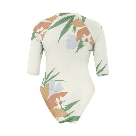 Vampire Art Half-sleeve Zipper Swimsuit - Exotic in Cream