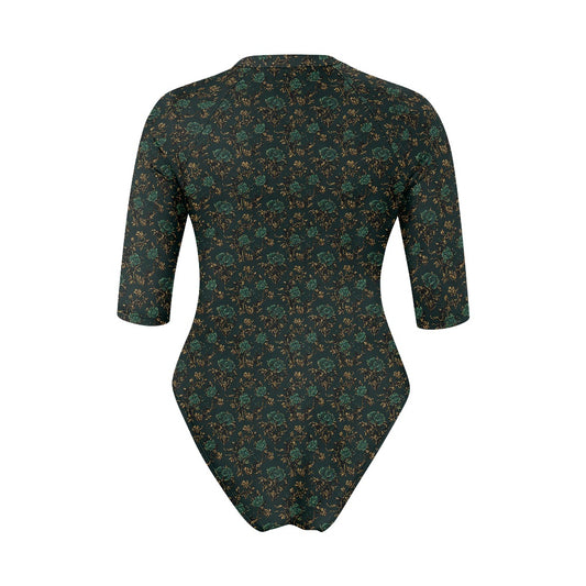 Vampire Art Half-sleeve Zipper Swimsuit - Gothic Teal Roses