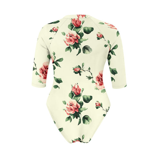 Vampire Art Half-sleeve Zipper Swimsuit - Retro Roses