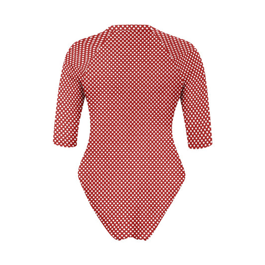 Vampire Art Half-sleeve Zipper Swimsuit - Red Cottagecore Polka Dot
