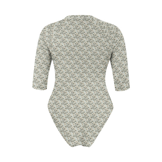 Vampire Art Half-sleeve Zipper Swimsuit - Little Victorian Flowers