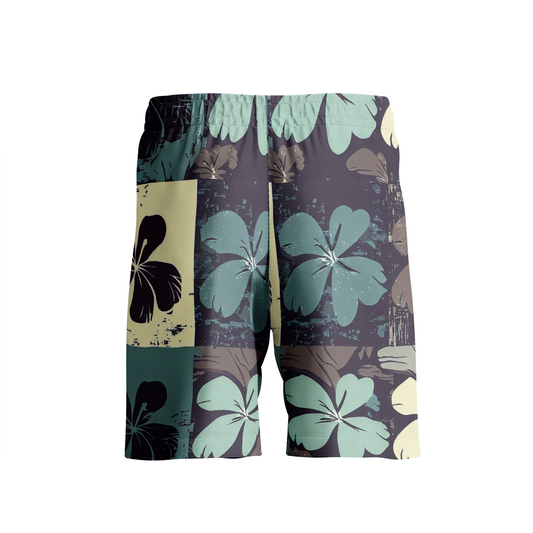 Vampire Art Retro Surf Patchwork Men's Beach Shorts - Brown Flower