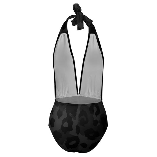 Vampire Art Retro Ladies Halter One Piece Swimsuit - Black Leopard