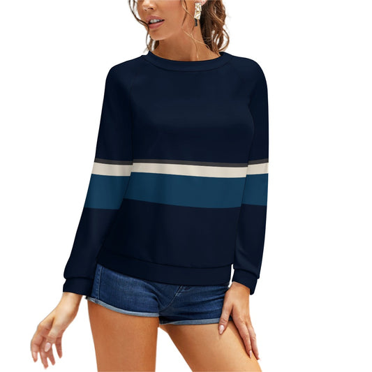 Vampire Art Brown Seventies Stripes Grunge Women's Raglan Sleeves U-Shaped Hem Long Sleeves Blouse